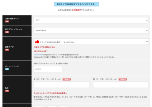 - プラットフォーム:MT4 または MT5 を選択。