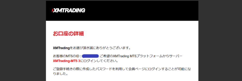 - 件名:「XMTradingへようこそ – お口座の詳細」