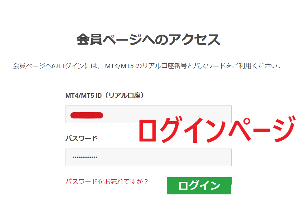 メール本文に、ご自身の会員IDが通知されます。(MT5のIDと同義)このIDとSTEP1-6で先ほど設定したパスワードで会員ページにログインすることができます。以下、本文のつづきです。