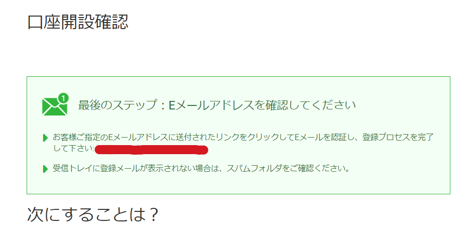 ↑画像にあるように、登録したメールアドレスにXMTrading(エックスエム)から口座開設確認メールが送信された旨のメッセージが出てきます。続けて何をすべきか?についても言及されていますね。とても親切な導線だと思います。