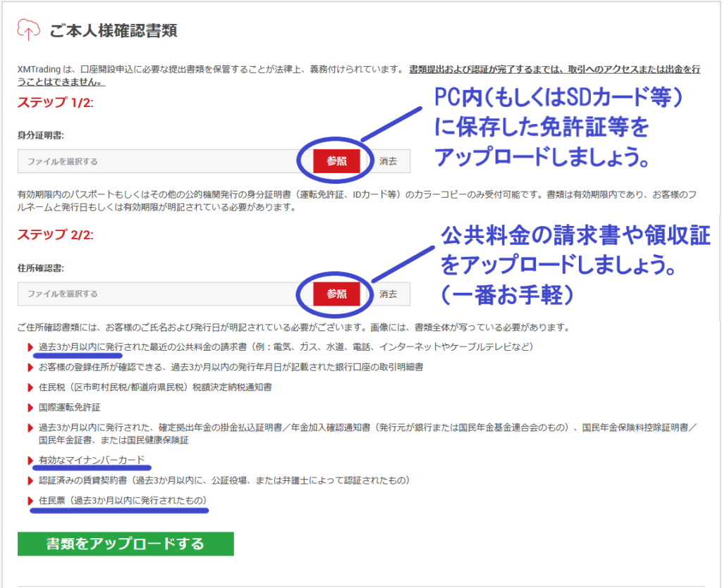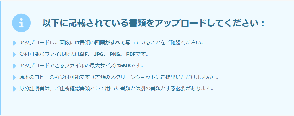 ↑は「以下に記載されている書類をアップロードしてください」とありますが、これは要するに書類を準備する際の注意事項です。