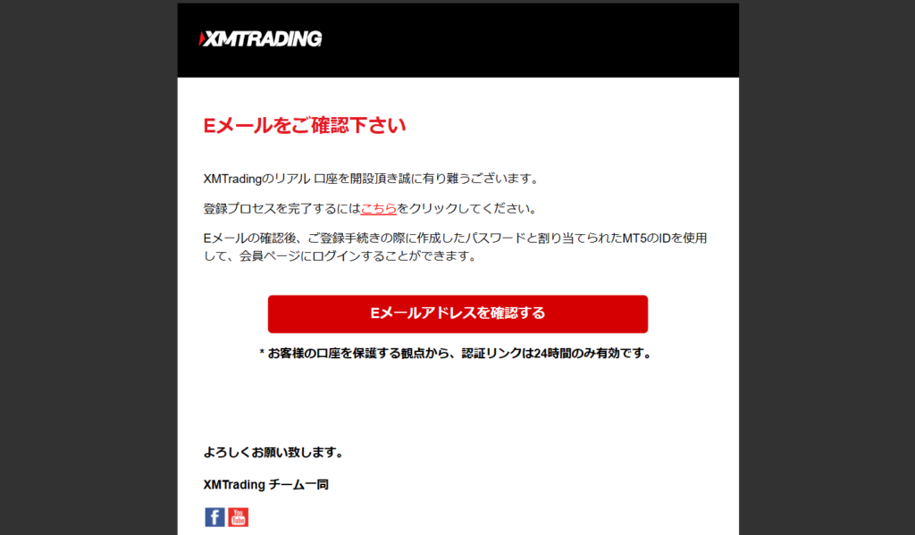 - 件名:「XMTradingへようこそ – Eメールアドレスをご確認ください」