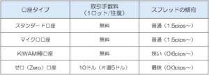 結論から言うと、「ゼロ(Zero)口座」のみ外付けの手数料が発生し、それ以外の口座は無料(スプレッドのみ)です。